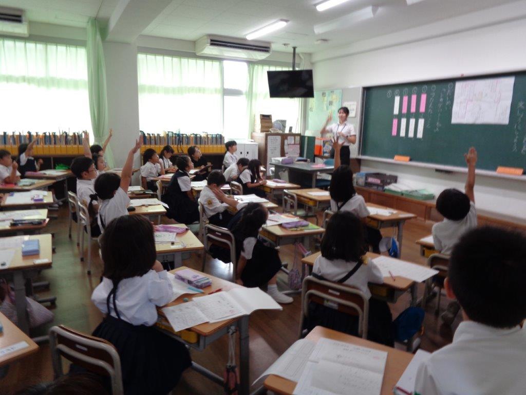 9月29日から、後期教育実習が始まりました。今年は、50名の学生が来ています。始めの一週間は主に本校教員の授業を参観し、二週目からは実地授業に入りました。今週は、大学の先生方も参観に来られ査定授業が行われました。実習生は、授業を経験するごとに授業マネジメントや児童への関わり方が上達しています。