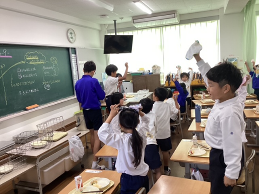 給食時間の放送では、保健委員会から『当たり前のことを当たり前に』という呼びかけがありました。ハンカチとティッシュは、まさに皆さんの健康と清潔を守るための『当たり前の持ち物』です。給食でもエプロン・マスクをつけての給食当番は『当たり前の姿』になります。